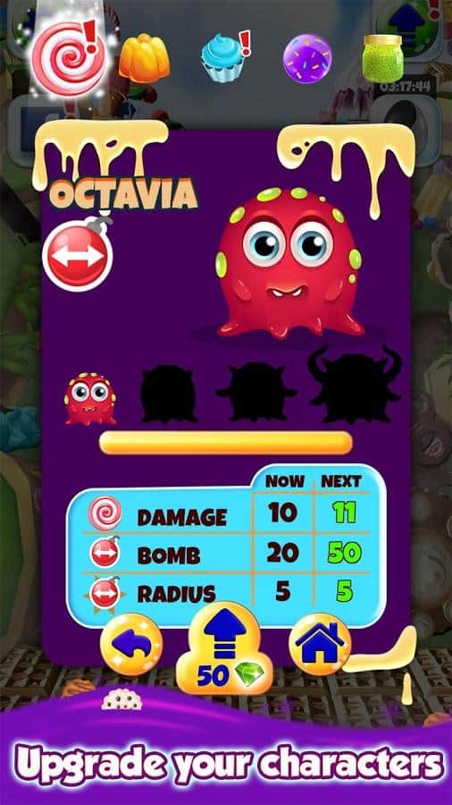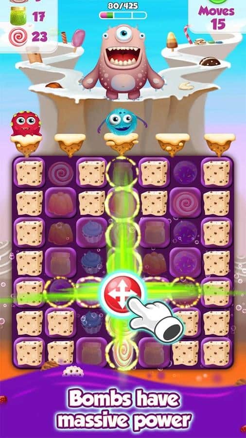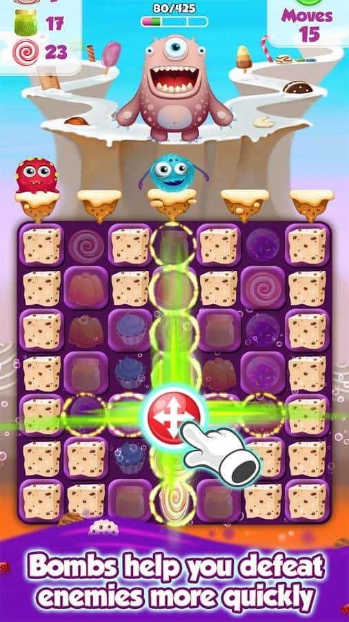 Best Friends In Candyland – цікава головоломка на андроїд, з жанру три в ряд де ви потрапите в казкову країну Candyland. Вашим завданням буде з'єднувати цукерки з допомогою одного дотику пальця до екрану і проходити захоплюючі рівні. Складайте ряди з цукерок, льодяників і кексів і отримуйте чудові прискорювачі і бонуси. Як тільки у вас вийде зібрати п'ять і більше об'єктів у ряд ви сгенеріруете потужну бомбу – ключ до успіху проходження гри. Вирішуйте численні головоломки і завдання і тренуйте свою відмінну реакцію. Грайте з друзями і разом весело проводите вільний час.