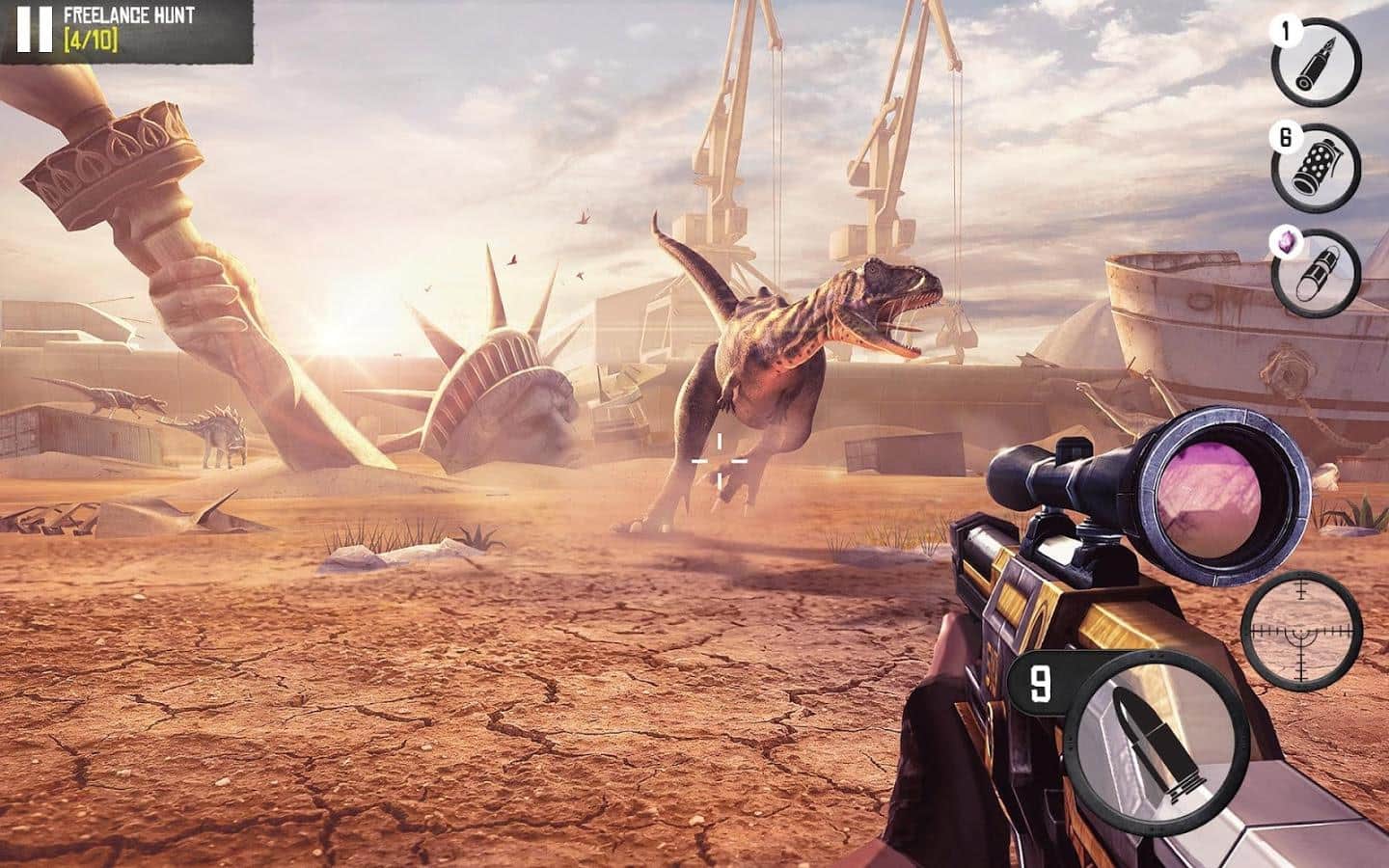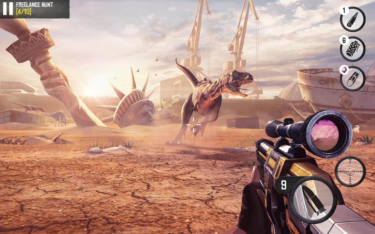Тир - досить популярний і поширений жанр на мобільних платформах, однак шанувальників подібних стрілялок в більшості випадків чекає розчарування, адже велика частина тирів досить низької якості, але зустрічаються і досить якісні проекти цього напряму. Так нова гра під назвою Best Sniper: Shooting Hunter 3D виконана в рамках класичної геймплейної механіки тирів, при цьому розробники реалізували і ряд цікавих ігрових можливостей. Так вам належить випробувати свої сили у веденні вогню на абсолютно різних цілях від звичних зомбі до цих доісторичних чудовиськ. В іншому вам так само належить знищувати цілі, прокачувати озброєння, купувати нове.