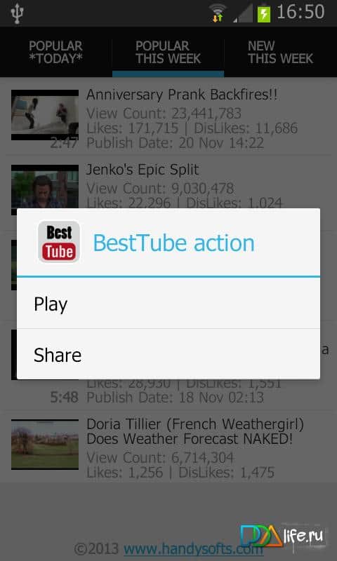 BestTube - The Best Videos – отличное приложение для андроид устройств, благодаря которому вы всегда будете иметь лучшее видео с Youtube в любое время дня и ночи, с возможностью просмотра популярного видео за сутки, неделю, а так же свежее видео недели. Сама программа имеет небольшой вес, доступный интерфейс и не требует регистрации. Пользуйтесь!