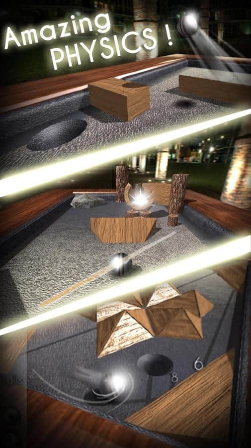 Більярд - напевно одна з найпопулярніших настільних ігор. Існує величезна кількість варіантів цієї гри і в деяких напрямках партії можуть тривати годинами, адже це свого роду шахи з кулями. Подібні затяжні ігри можуть оцінити по достоїнству хіба що фахівці, від того придумуються варіанти і стилі більярду з більш динамічним геймплеєм. Але особливий захват у глядачів викликає виконання складних трюків з кулями. Beyond Pool 3D Hole in one - варіація гри в більярд, але протистояти вам буде зовсім не суперник, а складні конструкції минаючи які вам необхідно забити кулю в лузу. Проходячи цю смугу перешкод і забиваючи кулю в лузу ви отримуєте доступ до наступного рівня. У грі реалістична фізика і гарна графіка, а геймплей дозволить вам відчути себе справжнім професіоналом.
