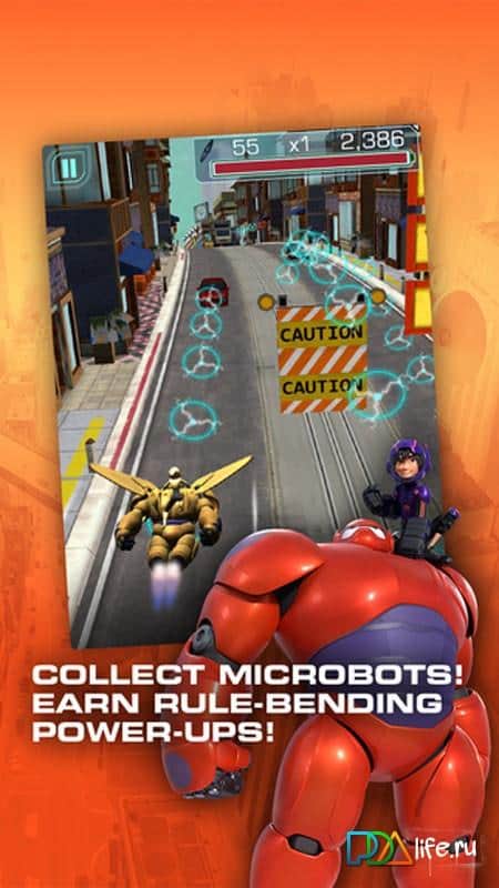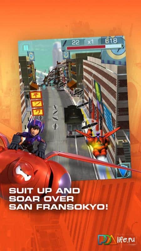 Big Hero 6: Baymax Blast - гра створена з відомого мультфільму "Місто героїв". Отже, динамічні і яскраві пригоди на вулицях Сан-Франциско. Экипируйте Баймакса і парите над містом в пошуках слідів викрадених микроботов. Розблокуйте нові ігрові персонажі і технології, насолоджуйтесь відео, а також не забувайте і про напружений і динамічний геймплей - долайте перешкоди, проривайтеся через бар'єри, отримуйте бонуси, проходьте найскладніші місії на "відмінно".