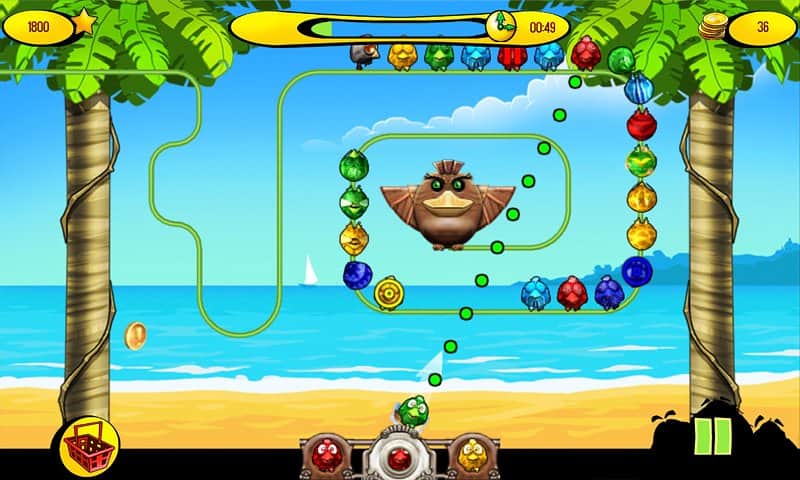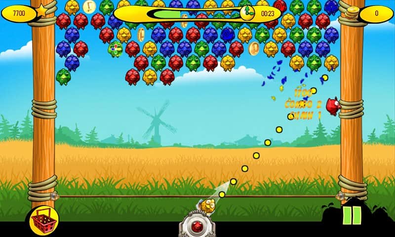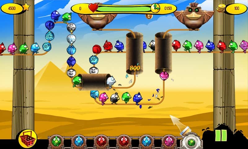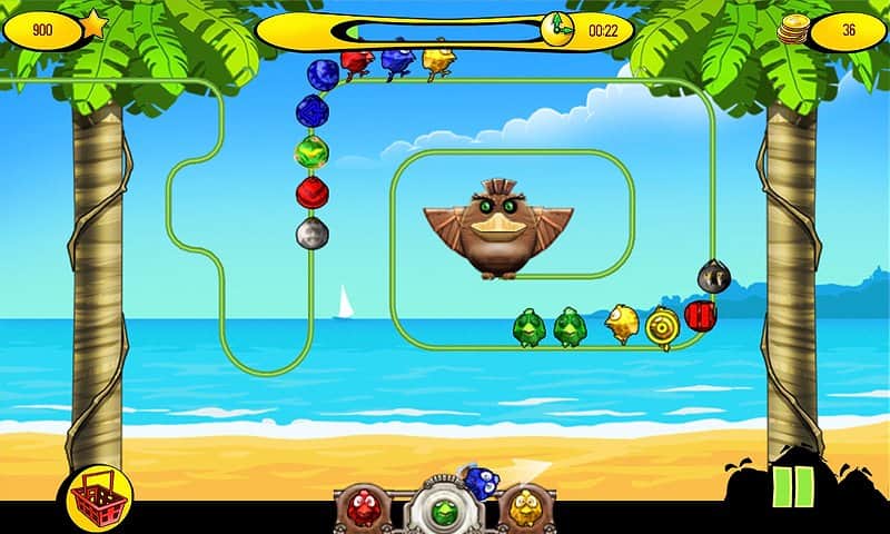 Пташки на дроті - гра в стилі відомої Zuma. Сюжетна лінія така-зла чаклунка наклала чари на різнокольорових пернатих і тепер вони рухаються як загіпнотизовані по дроту або групами. Ви можете розчаклувати забавних пташок. Для цього потрібно вистрілити кулькою відповідного кольору по наближається пташці. Все просто, але гра насичена і захоплює. Які ж особливості: