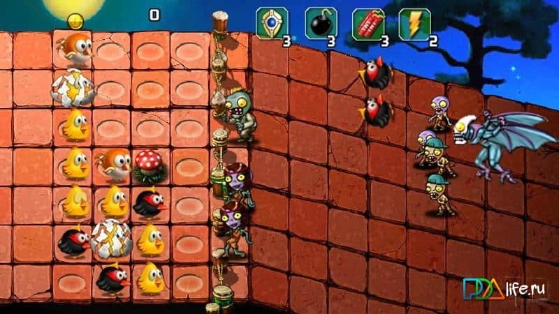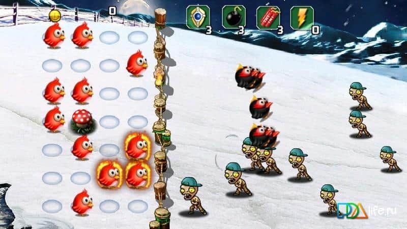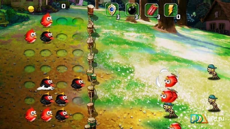 birds vs zombies 3 – экшен на андроид, в котором вы будете помогать птицам, защищать планету от ужасных зомби. Эта игра похожа на игру из жанра «три в ряд» вам также предстоит собирать по три и более птички в ряд для того чтобы совершить атаку на ходячих мертвецов. Люди пали в этой нелегкой битве и теперь вся надежда на маленьких птичек, приложите все свое логическое мышление и разработайте стратегию, чтобы победить зомби. Собирайте одинаковых птичек в ряд и скатывайте их с платформы, чтобы разрушить цепь зомби и остановить их нападение. Собирайте монетки после уничтожения зомби и покупайте на них новых птичек или повышйте уровень предыдущих.