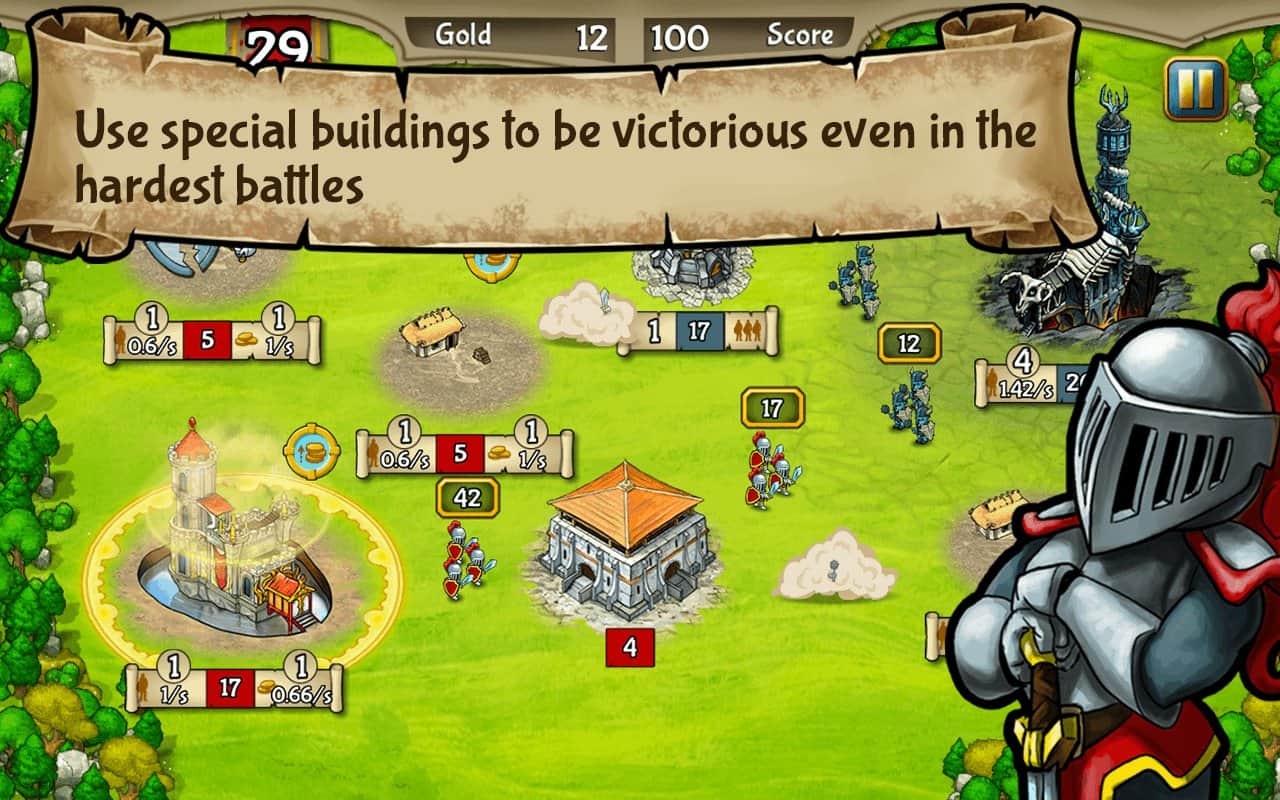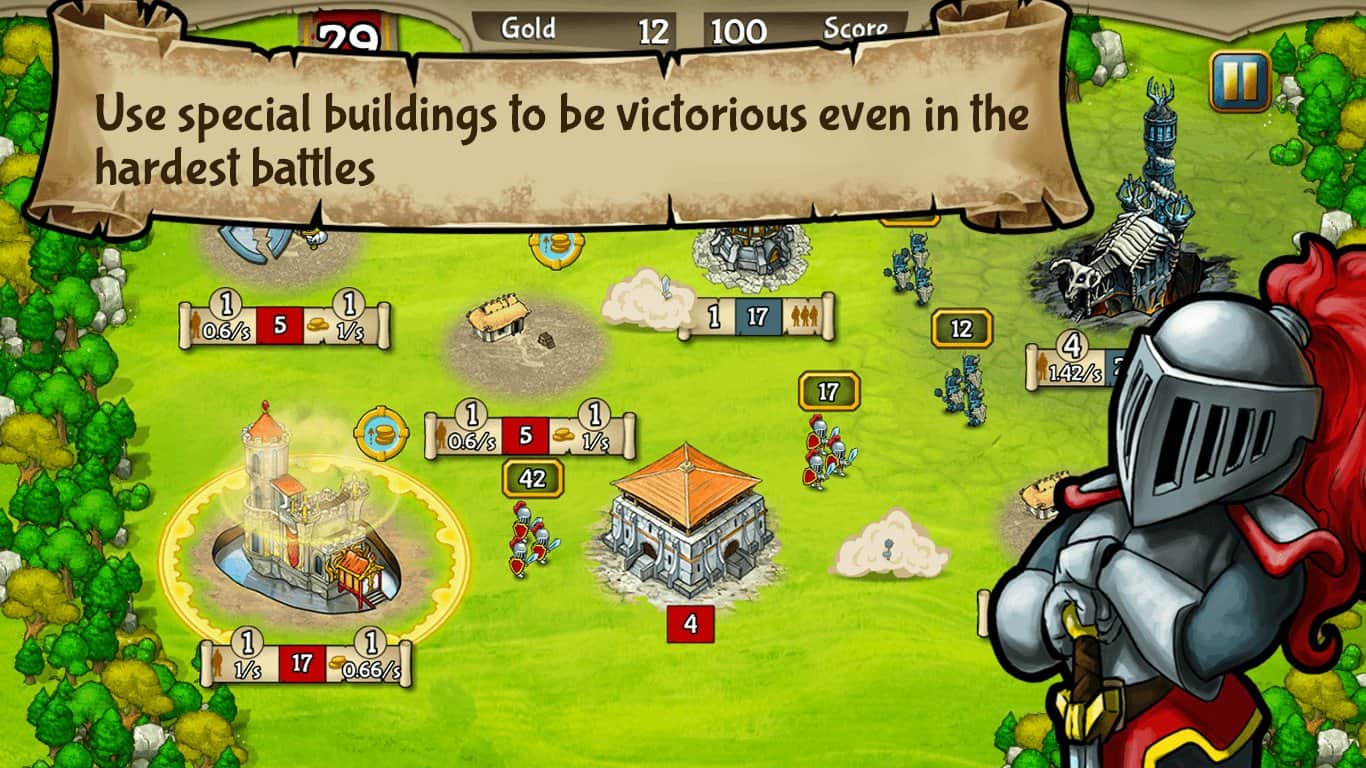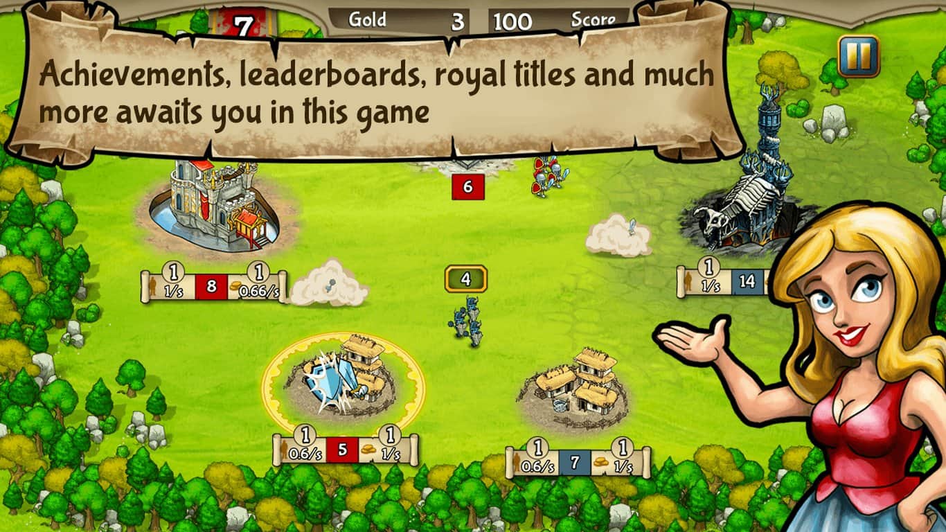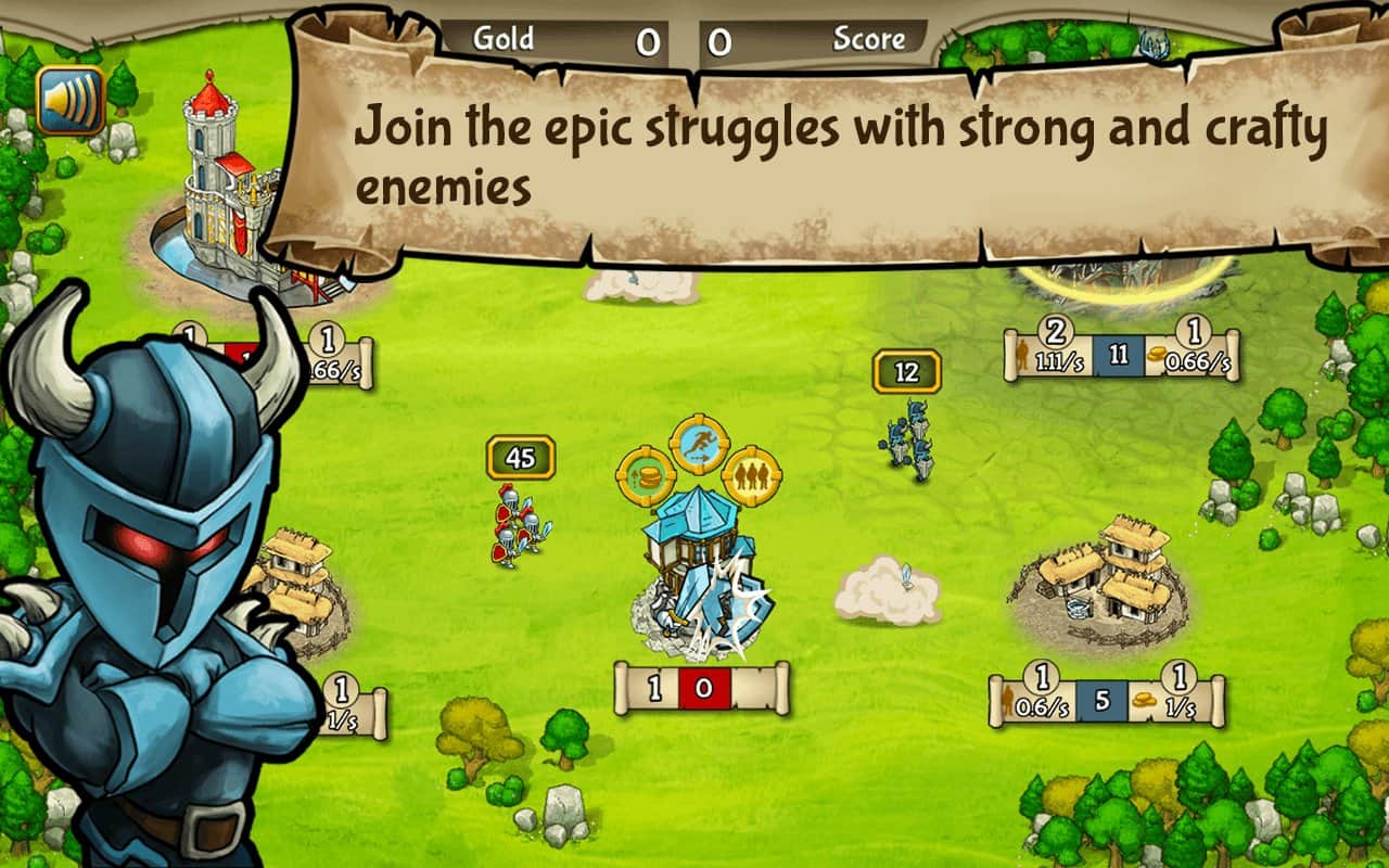 Битва замків-військово-стратегічна гра, з великою кількістю різноманітних будівель і військових юнітів. На самому початку гри, ви володієте тільки лише невеликим замком. Але з часом розвиваючи його інфраструктуру і підпорядковуючи собі близькі території, вам стають доступні нові поліпшення для замку і нові споруди. Стати великим завойовником!