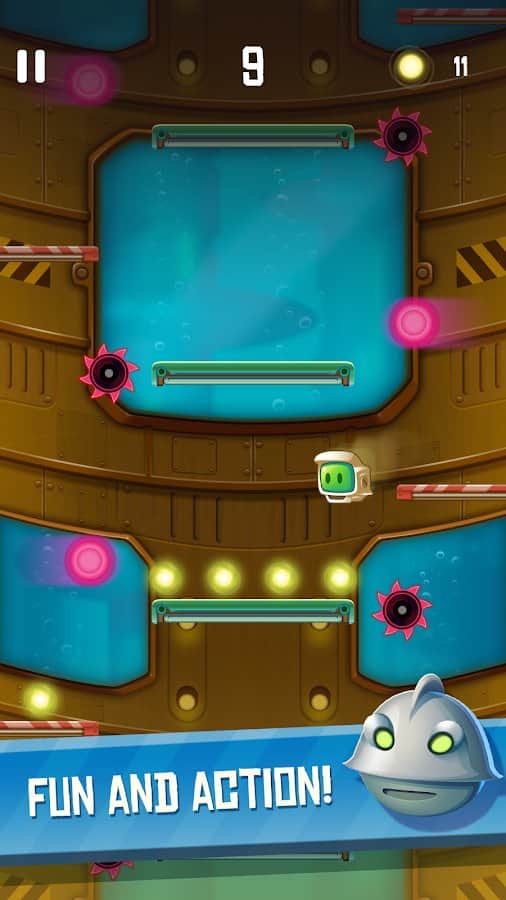 Bouncy Tins - кумедна і динамічна аркада в якій вам належить грати в ролі невдалого робота який опинився у важкій ситуації і вам необхідно допомогти вирватися з катівня секретної лабораторії. Ігрові локації виконані у вертикальному стилі, на кожному з рівнів вас буде чекати набір горизонтальних платформ, крім цього на рівні вас будуть чекати різні вороги і пастки яких вам і належить уникати на шляху до свободи. Приємна графіка, просте управління, і забавний персонаж дозволять вам весело провести час.