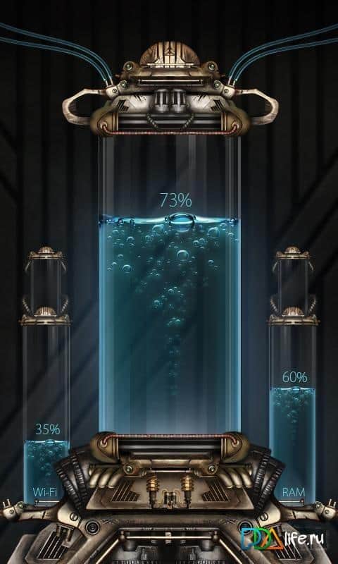 Brain Battery Monitor – живі шпалери на ваші телефони і планшети на android, в стилі стімпанк. Ці живі шпалери не просто прикрасять ваш екран, але і будуть відображати заряд акумулятора, рівень Wi-Fi або 3G і 4G, а також рівень RAM. Встановивши ці шпалери у свій телефон, ви отримаєте кілька колб з рідиною, яка і буде відображати різні параметри телефону, а також у них будуть плавати пара очей і мізки. Шпалери порадують вас різними колірними рішеннями і необмеженими настоянками. Прикрасьте свій телефон стильними шпалерами і насолоджуйтеся їх незвичайним виглядом і елементами декору. Шпалери підтримують альбомну і портретну орієнтацію.