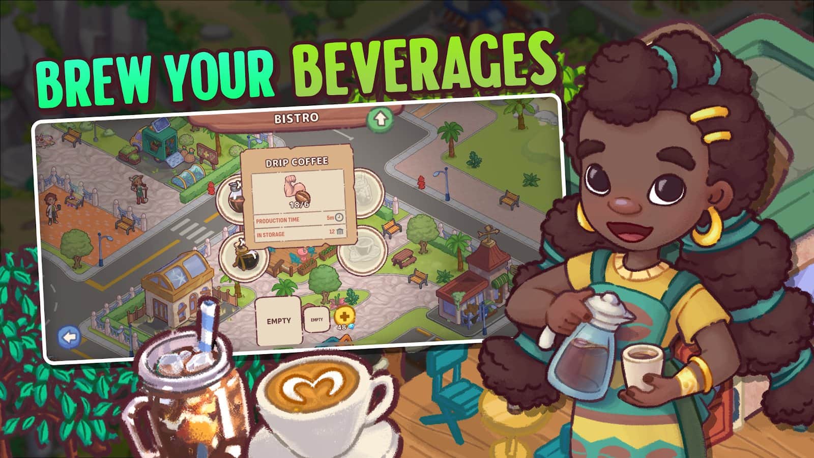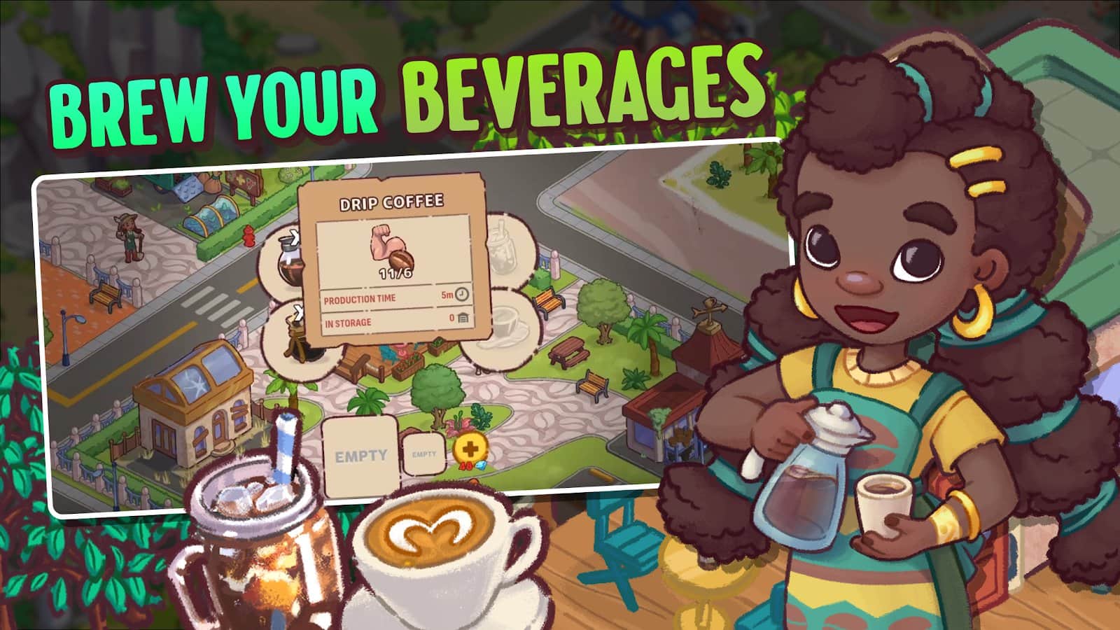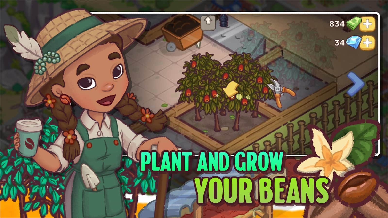 Brewtopia: Вирощуйте кавові зерна - вирощуйте та збирайте кавові зерна, створюйте ароматні суміші та допомагайте городянам позбутися корпоративного контролю над кавою. Розвивайте свою ферму, будуйте кав'ярні та готуйте смачні напої, експериментуючи з рідкісними сортами. Покращуйте місто, очищайте його від забруднень та створюйте процвітаючу спільноту справжніх цінителів кави!