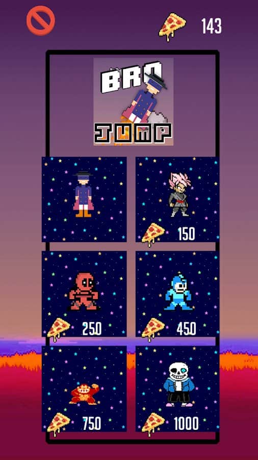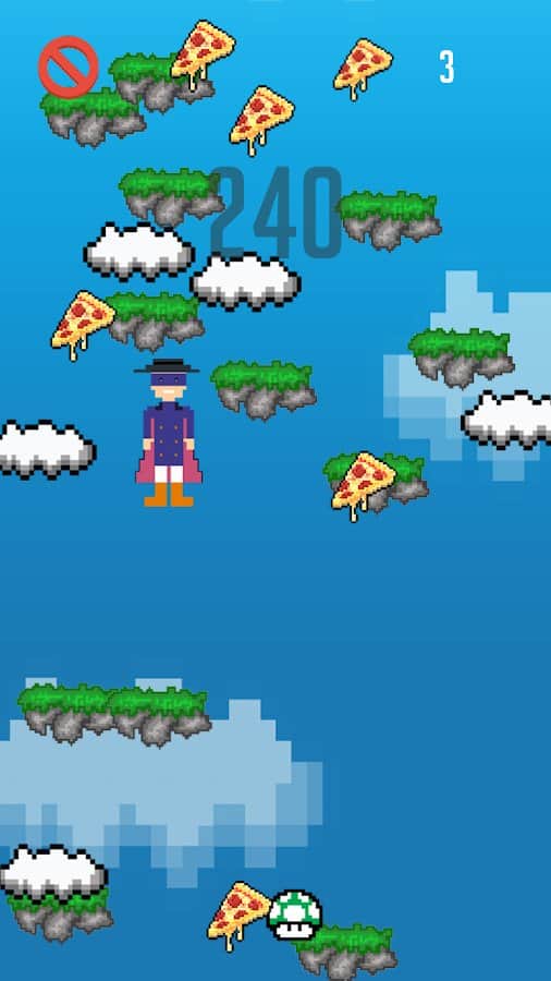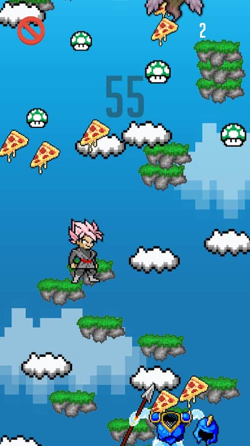 BroJump – цікава аркада на android, де ви будете керувати героєм, який піднімається все вище. Ця гра виконана в 8-бітному стилі і порадує гравців своєї піксельної графікою. Управляйте героєм і здійснюйте стрибки по платформах при цьому набираючи якомога більше очок. Збирайте по шляху шматочки піци і обходьте стороною численних ворогів. Управляйте персонажем за допомогою нахилів телефону і направляйте його в потрібному напрямку.