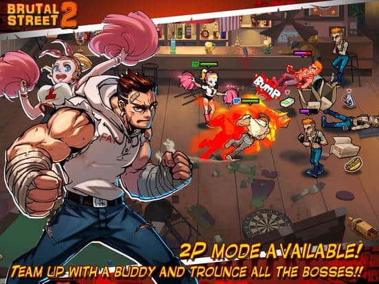Brutal Street 2 – захоплюючий файтинг, де ви будете очищати місто від різних банд. У цій грі ви будете переміщатися по вулицях міста і вступати в бій з численними бандитами і застосовувати різні удари, зброю і комбо. Перемагайте сильних супротивників і отримуйте окуляри навичок і покращуйте свого героя. У грі представлено вісім унікальних героїв, яких ви зможете перевірить на ділі, встановивши відповідний для вас режим складності. Пройдіть більше 180 рівнів гри і прокачайте всі навички свого героя. Також на вашому шляху зустрінуться сильні боси здолати яких ви зможете тільки, об'єднавшись з друзями для здійснення спільної мети.