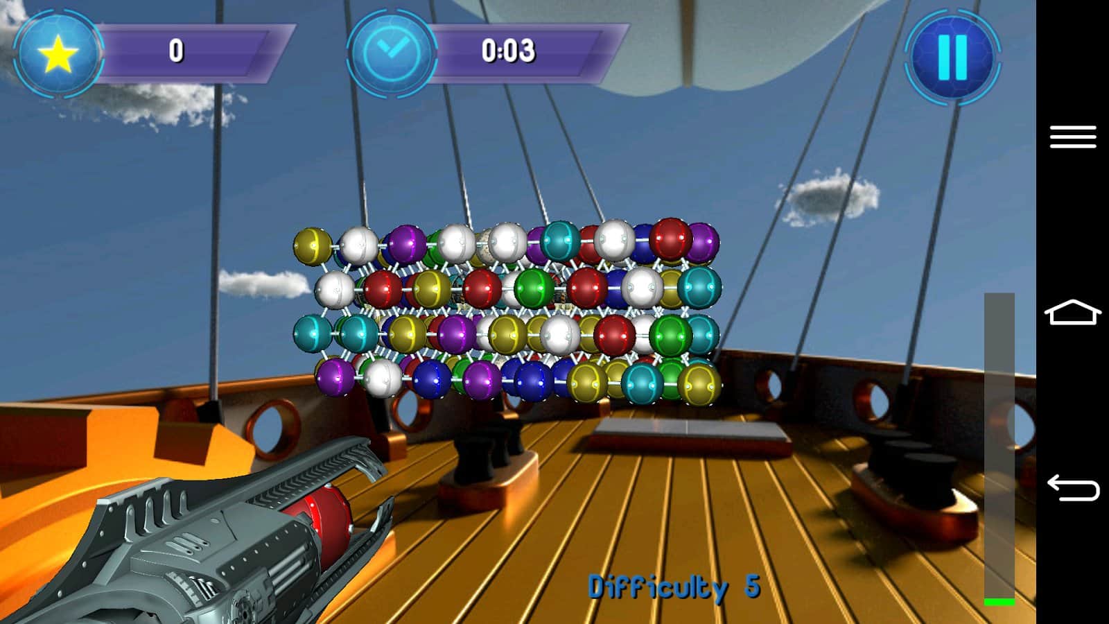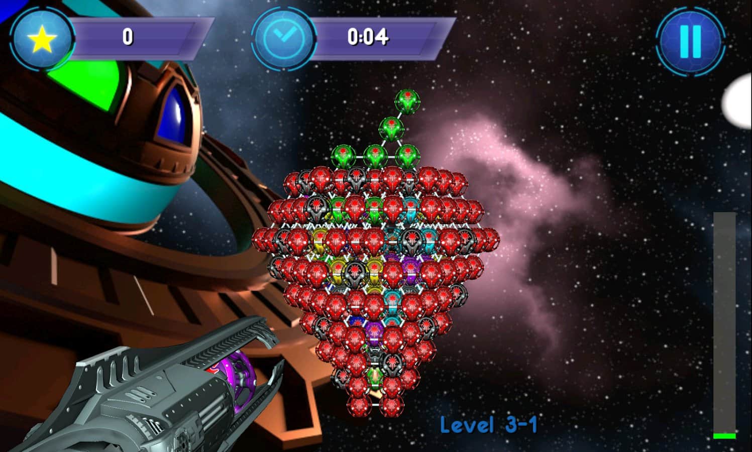 Bubble Shooter 3D – гра зроблена за подобою знаменитої гри Bubble Shooter на андроїд. У цій грі ви помещаетесь в 3D простір, де вам необхідно стріляти з гармати різнобарвними кульками в ті місця, де скупчення одного кольору більше. Стріляти і збирати по три і більше кульок в ряд. Чим вміло і точніше ви будете стріляти по кулях, тим швидше пройдете рівень, очищаючи його від куль. Для більшого інтересу і різноманітності у грі присутні кілька режимів: