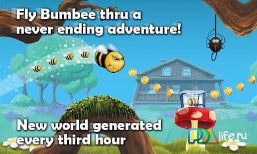 Bumbee - красива і цікава літалка. Керуйте невгамовною бджілкою, всього одним пальцем, збирайте різні монети і бонуси. Звільняючи по дорозі своїх побратимів, зберіть справжній бджолиний рій. Побийте всі рекорди!