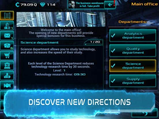 - відкривай і покращуй відділи в офісі,