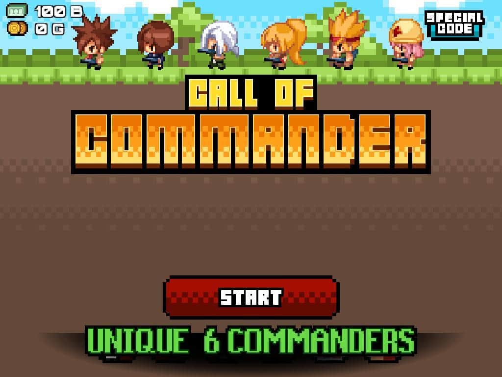 Напевно важко буде знайти гравця, який би хоча б раз у житті не грав в "Змійку" або її аналоги. Ця гра ось вже кілька десятків років міцно посідає першість серед тайм-кілерів. Звичайно ж, з часом сама змійка видозмінилася але ігрова механіка залишилася колишньою. Розробники ігор у свою чергу раз від разу не втомлюються використовувати геймплей популярної аркади у власних проектах. Call of Commander - екшен-аркада в піксельному стилі. Геймплей полягає в наступному, управляючи загоном, який міцно пов'язаний зі своїм командиром, тобто вами, ваше завдання бігаючи по ігровому полю знищувати ворожих солдатів. Ваш загін в свою чергу буде представляти щось подібне до змійки, що звичайно ж позначиться на управління і ігровому процесі в цілому.