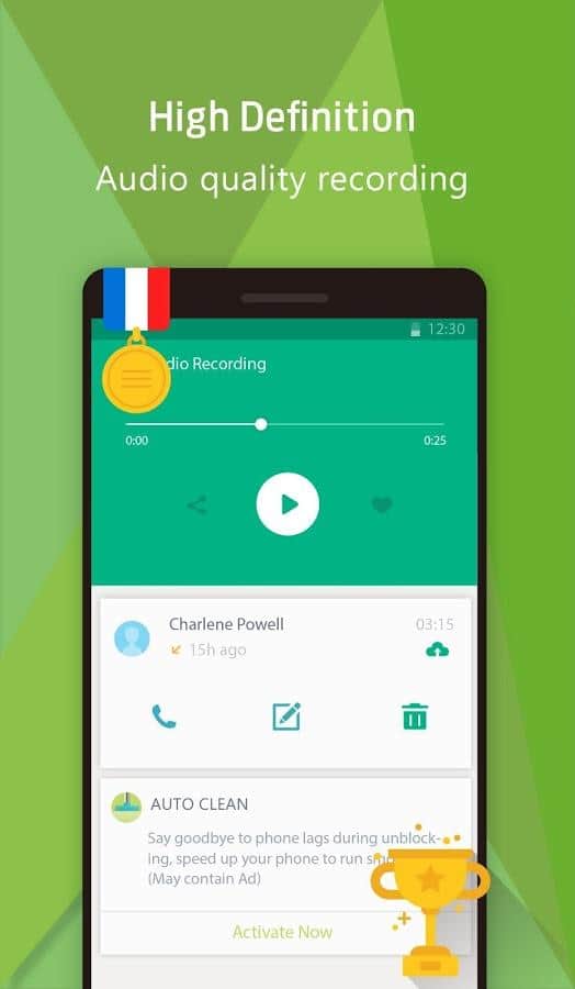 Call Recorder - Automatic - записуйте всі вхідні і вихідні дзвінки в автоматичному режимі разом з додатком і прослуховуйте їх стільки разів, скільки захочете. Функція "Білий список" з легкістю дозволить вам відібрати потрібні для запису дзвінки, інші будуть автоматично ігноруватимуться. Також можна вибрати певний номер телефону, дзвінки з яким завжди будуть записуватися. Ви зможете швидко налаштувати потрібний режим управління записами, зберігати і видаляти їх при необхідності, групувати контакти в телефоні, насолоджуватися відмінною якістю відтворення, створити аудіо запис в будь-якому форматі і поставити її на дзвінок.