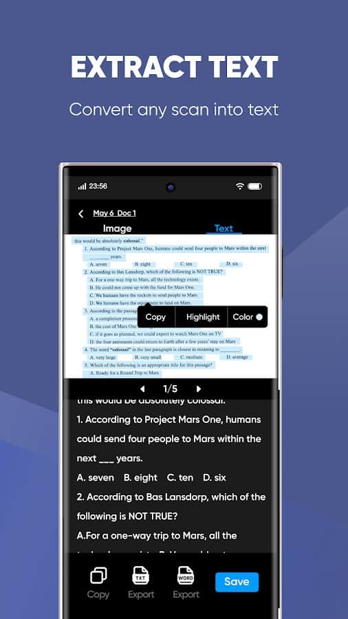 < p > Camera Scanner - PDF Scanner - відскануйте документи і збережіть їх, використовуючи функцію OCR для розпізнавання тексту. Додаток дозволяє робити пошук за ключовими словами і редагувати сам текст. При автоматичній обрізку і поліпшення якості знімків, ви зможете легко все відсканувати. Також, при бажанні додайте водяні знаки на вже відскановані документи для їх захисту від чужого використання. Цей інструмент є потужним помічником, яким ви можете користуватися в будь-який час і місце, швидко виконуючи сканування.