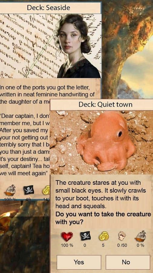 Капітан Вибору - унікальна візуальна новела, де ви вступите в захоплюючу пригоду і станете легендарним адміралом піратів, пройшовши шлях від скромного хлопця з берегового міста. У цій захоплюючій історії кожне ваше рішення має значення, і лише від вас залежить, як розвинеться доля світу й його мешканців. Гра пропонує вам унікальну можливість впливати на хід подій і вирішувати долі персонажів. Ваші рішення визначать, хто виживе до кінця історії, а хто буде спочивати на морському дні, порослий міфами й загадками. Але пам'ятайте, що не лише доля світу залежить від ваших дій. Ваш особистий життя також відіграє важливу роль. Вам належить вибрати співмешканку, яка буде чекати на вас на березі, і ваш вибір може вплинути на хід вашої пригоди.