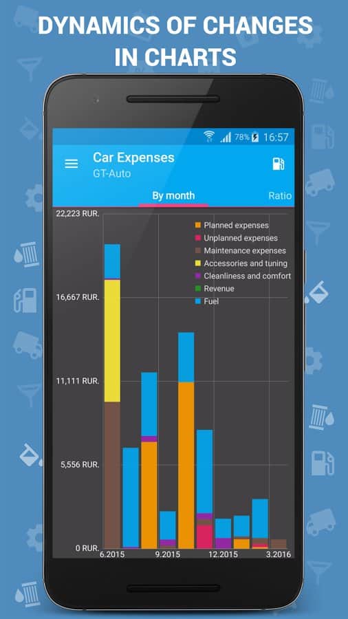Car Expenses - Авто витрати – пропонуємо вашій увазі гідне додаток для користувачів андроїд від розробника KB2 SOFT, суть якого в тому, щоб вести облік всіх витрат і розрахунок палива вашого автомобіля. Додаток надасть інформацію не тільки в цифрах, але і в графіках, а так само деякі планові витрати будуть спрогнозовані, сповістивши вас в потрібний момент, є віджети для швидкого додавання записів та інше. Все що вам необхідно – це своєчасно вносити всі витрати на авто, як раптові, так і планові.