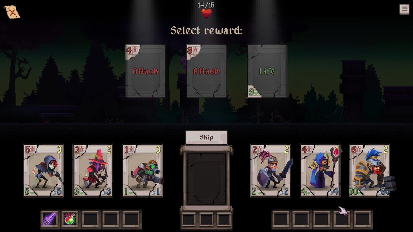 CardCraft - Створюйте непереможних бійців, комбінуючи найкращі здібності та риси своїх героїв. Розвивайте унікальні стратегії, експериментуйте з пасивними навичками та досягайте потужних синергій. Кожен забіг у цьому рогалику з елементами менеджменту та авто-баттлера пропонує нові комбінації, несподівані виклики та безкінечні тактичні можливості. Збирайте команду мрії та доведіть, що найсильніший воїн — це той, кого створили ви.