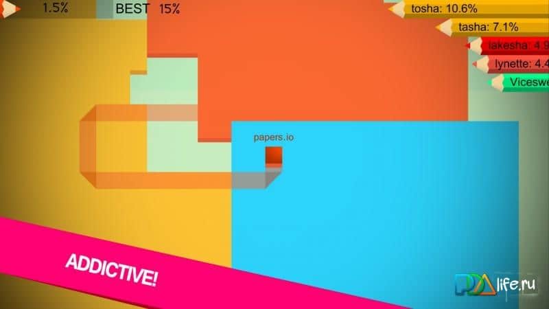 Cards.io – керуйте пересуванням по ігровому полю паперової карти і захоплюйте якомога більше території окашивая її в свій колір. У цій грі ви будете керувати картою яка рухається по полю і залишає за собою свій слід. Вашим завданням буде за менший проміжок часу розфарбувати якомога більшу територію в свій колір і піднятися в таблиці лідерів на перше місце. Захоплюйте максимальні території і випереджайте суперників, при цьому будьте гранично обережні, щоб не зіткнутися зі слідом суперника інакше ви програєте. Ретельно продумуйте свої дії і блокуйте території опонентів.