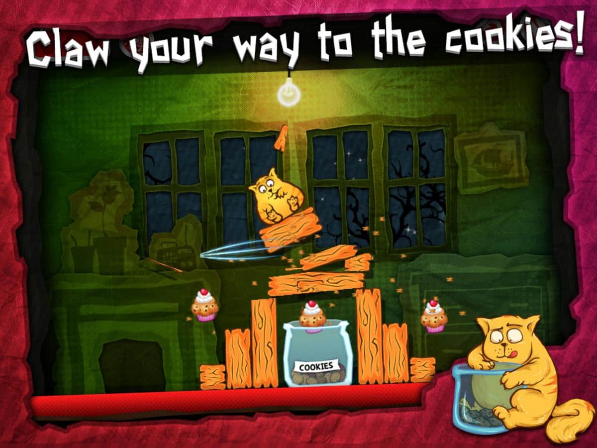 Cat on a Diet – захоплююча головоломка для IOS, де ви будете допомагати толстому коту поїдати його улюблені печива. У цій грі ви опинитеся на рівнях, які заповнені численними пастками, перешкодами і ворогами. Вашим завданням буде зробити все можливе, що від вас залежить, щоб допомогти коту дістатися до печива. Взаємодійте на рівнях цієї гри з об'єктами, обертаючи різні механізми, піля дошки і крутячи болти. Збирайте різноманітні бонуси, які дозволять вам завершити рівень як можна швидше. Грайте в цю гру і насолоджуйтеся відмінною фізикою, яскравою графікою і простим і зрозумілим управлінням. Нагодуйте товстого кота смачними печивом.