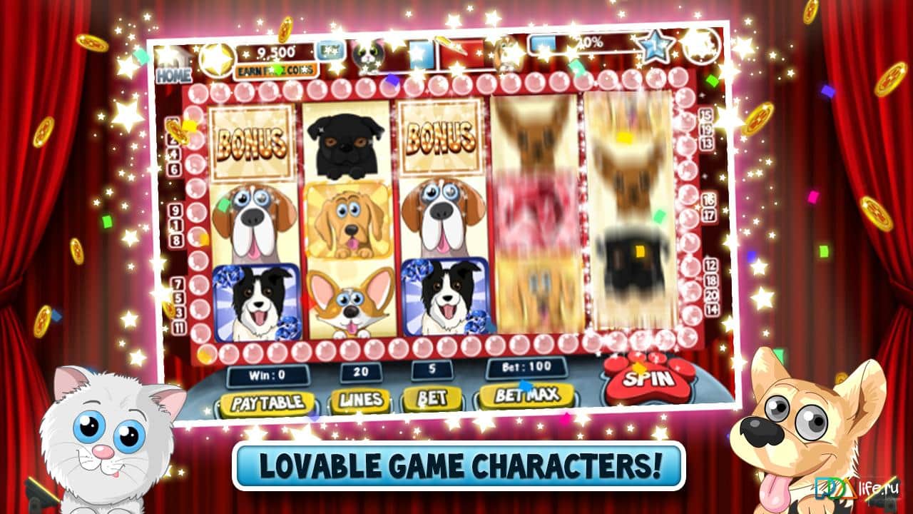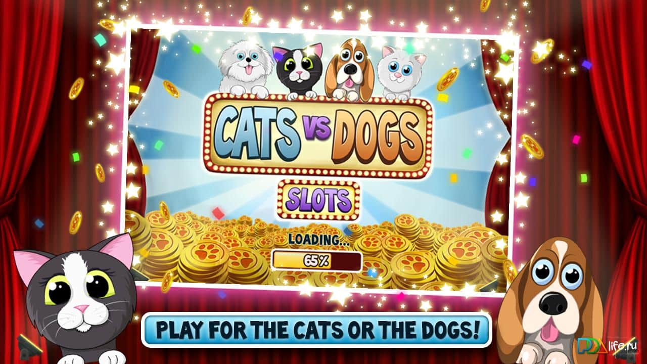 Cats vs Dogs Slots – сыграйте на игровых автоматах на своем андроид устройстве. Определитесь с персонажем, получите первые бесплатные монеты и вступите в игру. Играйте с друзьями и не только, следите за доской лидеров и будьте максимально везучими.