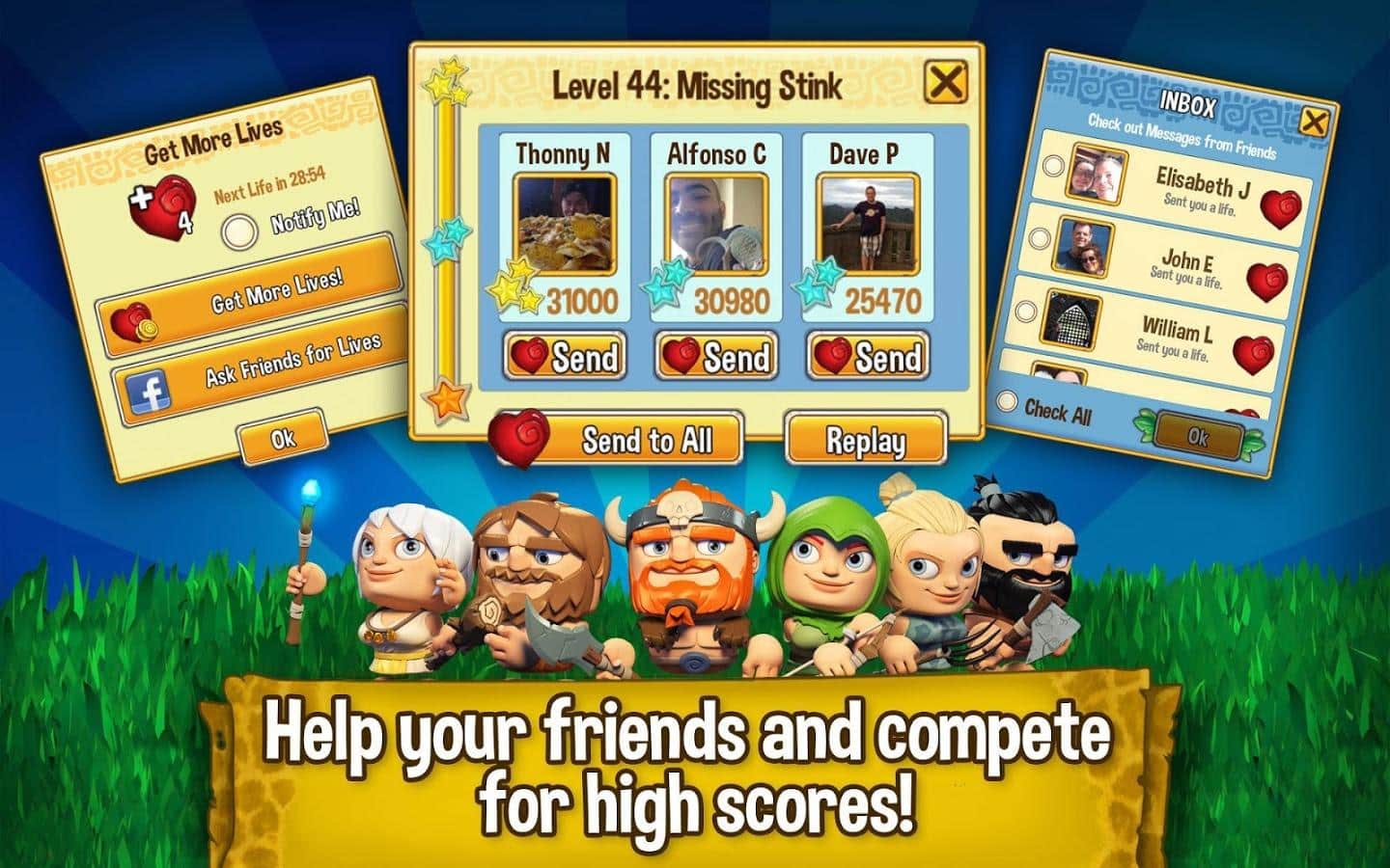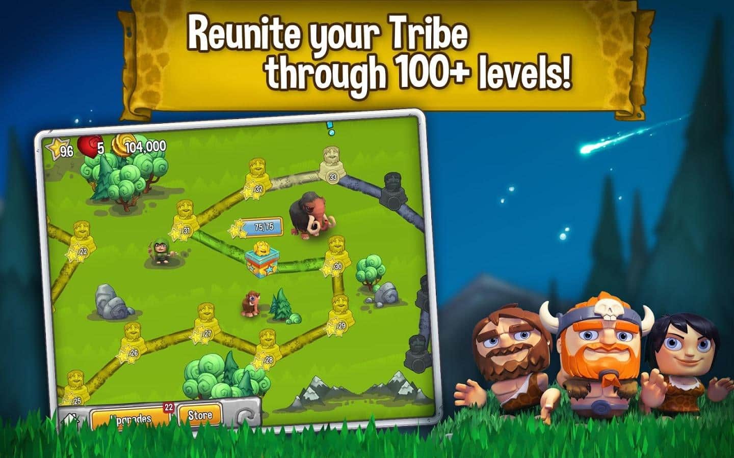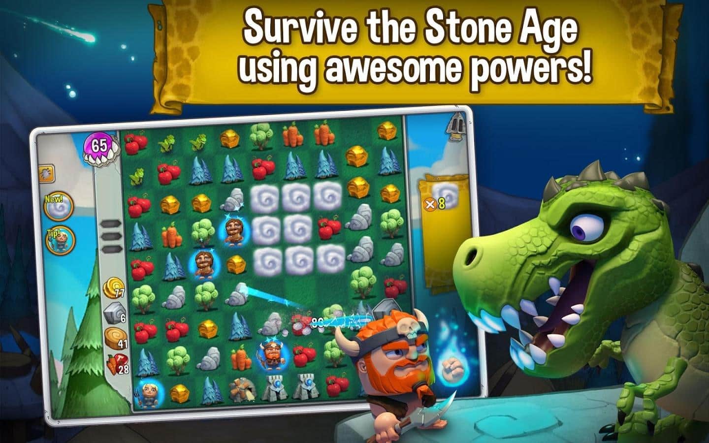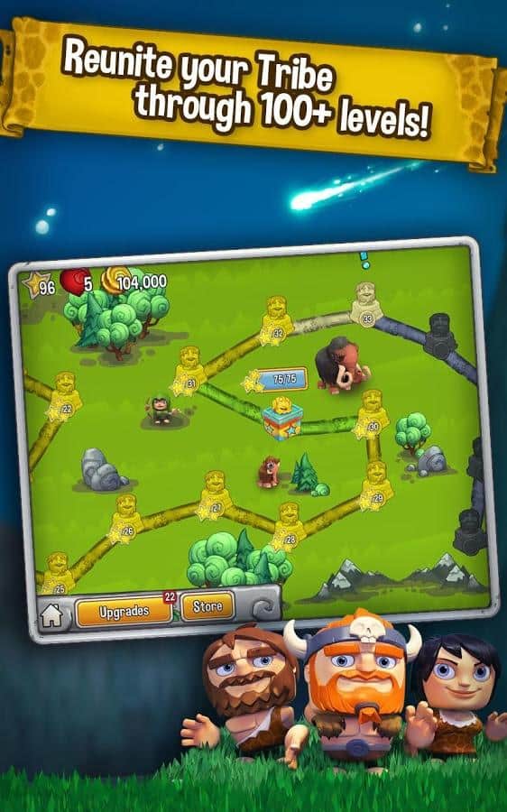 Cavemania - игра на аndroid, из жанра 3 в ряд с элементами стратегии. В которой метеорит упал на землю разбудил динозавров и принес хаос. Вашей задачей будет помощь вождю племени воссоединится со своим племенем, при этом преодолевая все препятствия и главного врага динозавров.
