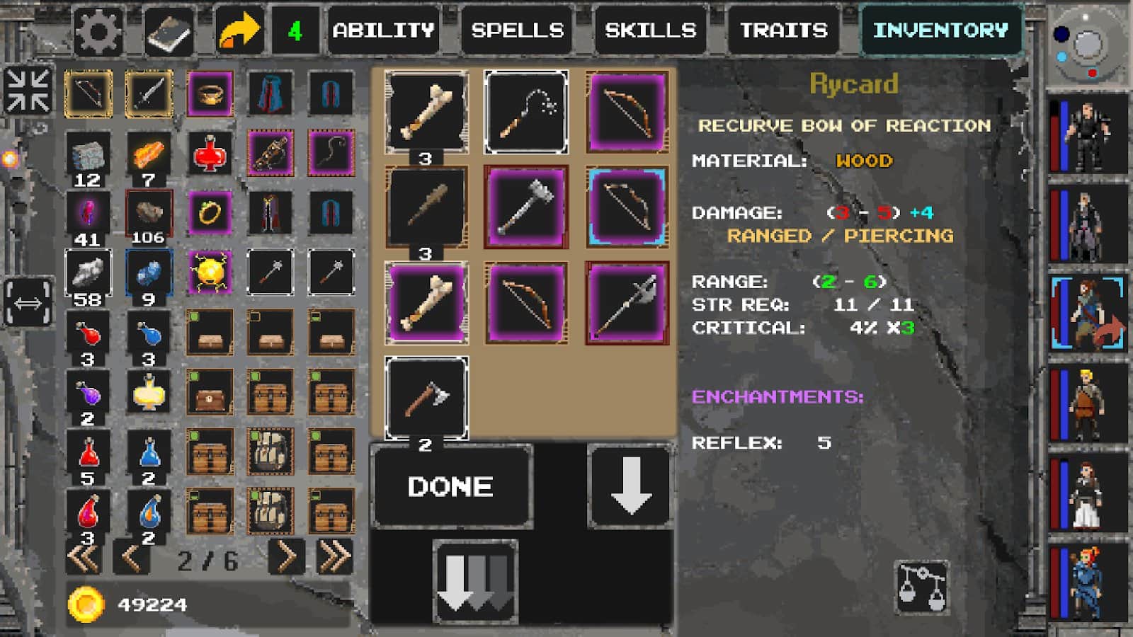 Caves of Lore — покрокова фентезійна CRPG з піксельною графікою, де поєднуються дослідження, взаємодія з персонажами та тактичні бої на решітці. Гравці можуть керувати групою з 6 героїв, використовуючи понад 65 заклинань і здібностей, боротися з понад 50 монстрами та виконувати більше 30 квестів. У грі представлені десятки унікальних предметів, а також сотні можливих комбінацій заклинань для створення потужних артефактів.