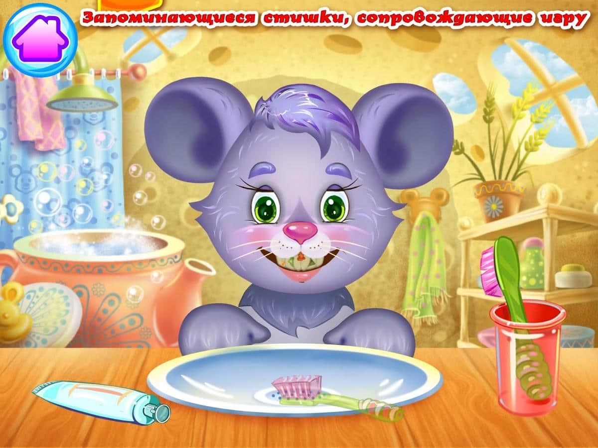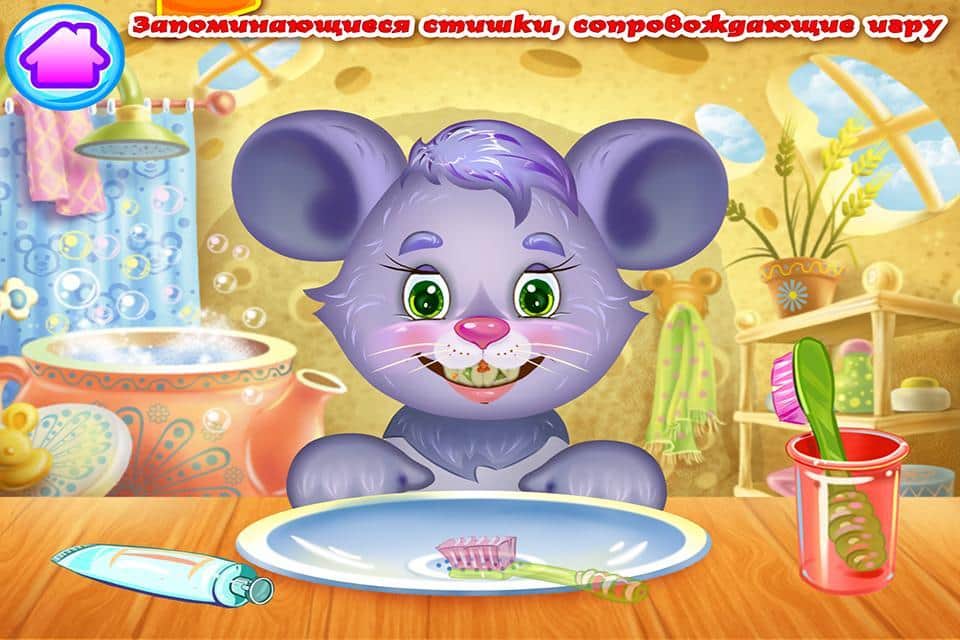 ЧИСТЮЛЕЧКИ Гігієна для малюків - гра для дітей дошкільного віку, яка навчить вашої дитини чистоті. Багато дітей не люблять умиватися, чистити зуби, підстригати нігті і купатися. З допомогою цієї гри ваша дитина полюбить всі ці заняття, допомагаючи забавним тваринам проводити гігієнічні процедури. Допоможіть зайчику помити голову, білочці вмитися, зайченя посадити на горщик, почистити хиткі мишці і підстригти нігтики зайчику. Разом з дитиною грайте в цю гру і коментуйте все, що відбувається на екрані. Також вивчіть невеликі стібки, які будуть звучати в кожній міні-грі. Гра порадує вас і вашої дитини красивими ілюстраціями і яскравою графікою.