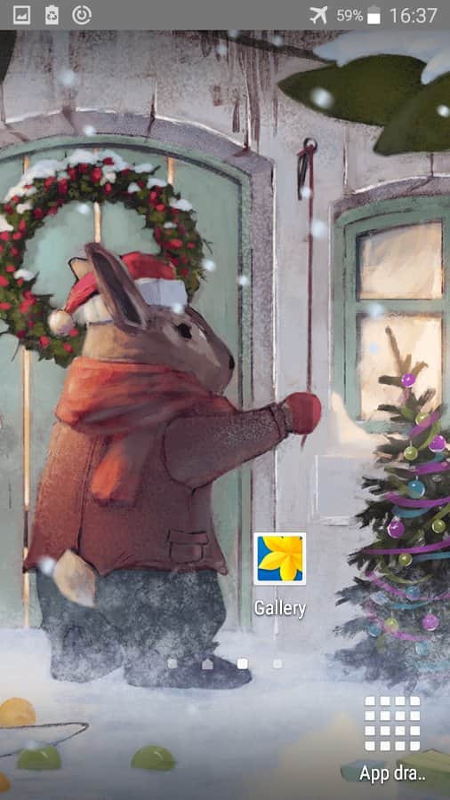 Christmas gifts Live Wallpaper – відмінні живі шпалери на андроїд, які подарують вам різдвяний настрій. Ці шпалери перенесуть вас в зимовий ліс, де ви будете спостерігати сімейство кроликів, де батько кролик приніс ялинку та подарунки для своїх дітей. Пориньте у святкову атмосферу цих шпалер і спостерігайте всю картину того, що відбувається, як радісні дітлахи зустрічають тата. Шпалери вас порадують відмінною графікою, де ви зможете переглянути всю картину того, що відбувається. Заходите в налаштування і додавати різні ефекти у вигляді снігу і блискучою гірлянди.