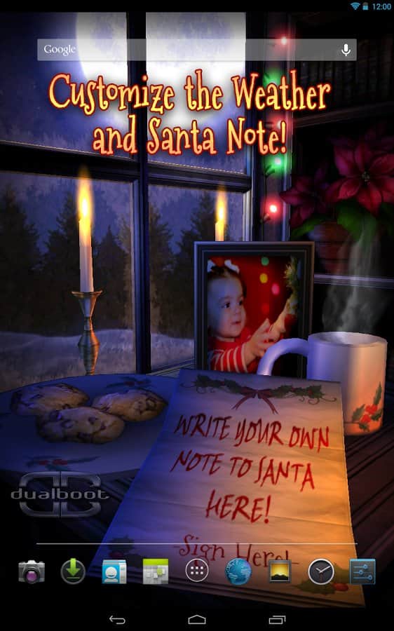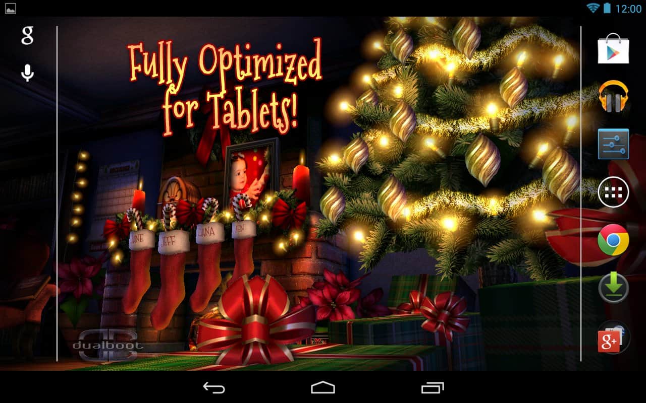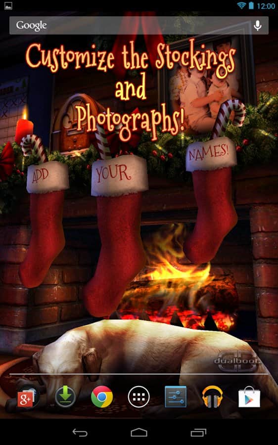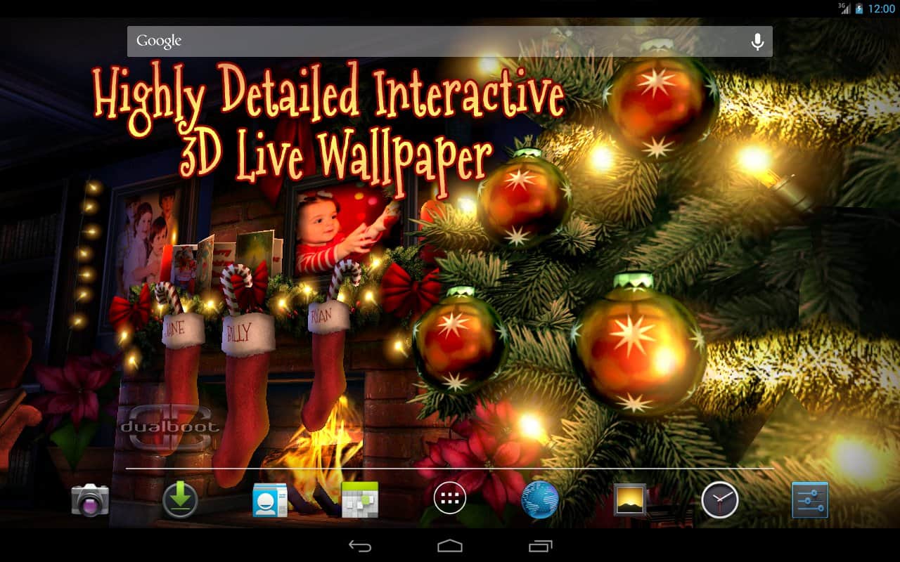 Christmas HD – чудесные Рождественские живые обои для андроид устройств. Здесь все пропитано духом праздника, различная атрибутика: носочки, фото (можно поместить свое), горящий камин, елка и многое другое. А настенный календарь будет напоминать вам сколько дней осталось до праздника - Рождества! За окном идет снег и все замерло в ожидании чуда!
