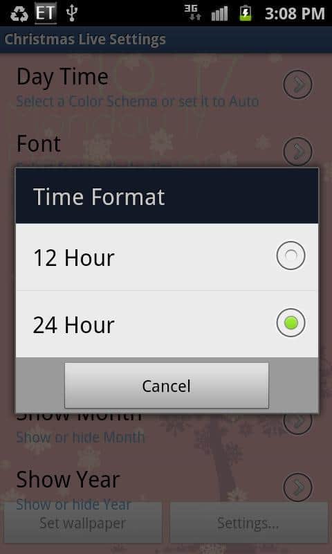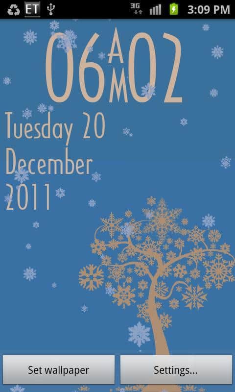 Christmas Livewallpaper – Різдвяні і новорічні свята роблять нас трішки добрішим і ми прагнемо, щоб дух свята ні де нас не покидав. Для цих цілей були розроблені святкові живі шпалери з елегантно оформлені годинами. Красиво анімовані сніжинки падають на вашому екрані, нагадуючи, що на носі зимові свята. Які так люблять жителі нашої планети. Ви можете вибирати між різними шрифтами. Тим самим персоналізіруя шпалери під себе. Також ви можете вибрати між різними колірними схемами або включити автоматичний режим в якому кольори самі змінюються через певний час.
