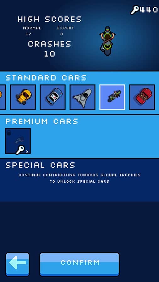 Chrome Death – візьміть під свій контроль відважного гонщика і проведіть його по вулицях міста, намагаючись втекти від переслідування. У цих перегонах з видом зверху ви будете керувати швидким автомобілем, який їде по вулицях нічного міста, намагаючись втекти від переслідування і уникнути зіткнення з перешкодами. Гра порадує вас легким керуванням, де вам потрібно вчасно натискати на екран свого деваса щоб машина зробила поворот. Уникайте зіткнення з іншими машинами, огорожами і стінами будинків. Виконуйте різноманітні місії цієї гри і купуйте нові автомобілі. Встановіть свій рекорд по часу проходження траси і змагайтеся з друзями.
