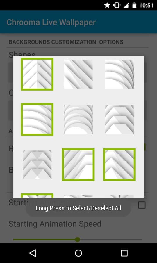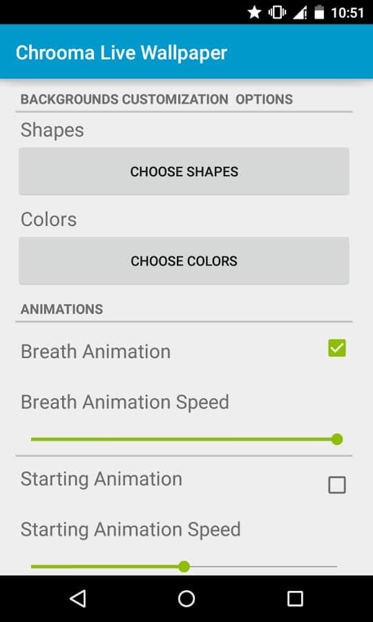 Chrooma Live Wallpaper - відмінні і прості шпалери, які відмінно підлаштуються під ваш настрій. Дуже рівні і точні лінії, надають цим шпалерами елегантний вигляд. Особисто від себе називав би їх шпалерами перфекціоніста. Вони особливо нічим не виділяються, але при цьому зроблено досить якісно, і не дуже сильно будуть їсти вашу батарею. Тому ідеально підійде любителям мінімалізму. Ви можете налаштувати їх під себе, наприклад зміну шпалер, після того, як ви зайдете в меню. Або ж при подвійному натисканні на екран вашого пристрою. Вони дуже прості в налаштуванні, і мають відмінне зображення. Можете спокійно качати їх, і не бояться того, що вони вам не сподобаються.