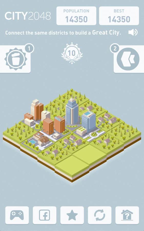 City 2048 – захоплююча головоломка на андроїд, зроблена за подобою знаменитої гри 2048 Number. У цій грі перед вами виявиться ігрове поле, поділене на кілька квадратиків, вашим завданням буде міняти їх місцями і тим самим зводити величезний мегаполіс. Докладайте всю свою уяву і логіку для того щоб рухати плитки так, щоб отримати максимально можливий результат. Продумуйте кожен свій крок і отримуйте в якості нагороди цінні бонуси і винагорода. Будуйте міста і величезні мегаполіси з допомогою одного дотику пальця до екрану. Затягуюча гра подарує вам багато чалова веселощів.