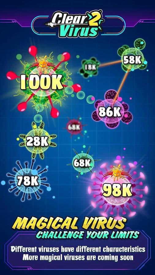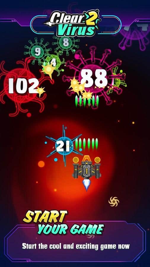 Clear Virus - Clash of Bio, 98K, Trojan War – скролл-шутер для андроїд, де ви будете знищувати віруси. У вашому будинку розвелося багато вірусів так що приготуйтеся битися і стати найкращим стрільцем. Візьміть під свій контроль корабель і ведіть безперервний вогонь по вірусів, які здатні мутувати і розмножуватися. При кожному пострілі вірус буде розпадатися що ускладнить вам завдання. Прокачуйте і покращуйте свій літак і готуйтеся до битви з сильними босами. Гра порадує гравців відмінною графікою, крутим звуком і вібрацією що дозволить вам по-справжньому насолодитися грою.