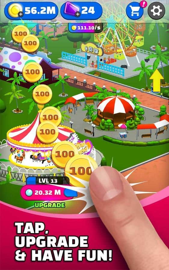 Click Park Idle Building Roller Coaster Game! - аркадний кликкер з елементами містобудівного симулятора та економічної стратегії в якому вам належить постаратися побудувати прибутковий і успішний парк атракціонів. Заробляючи кошти ви будете вкладати їх у будівництво різних об'єктів і атракціонів, які в свою чергу будуть приносити додатковий дохід, таким чином ви постійно будете розширюватися і залучати якомога більше відвідувачів.