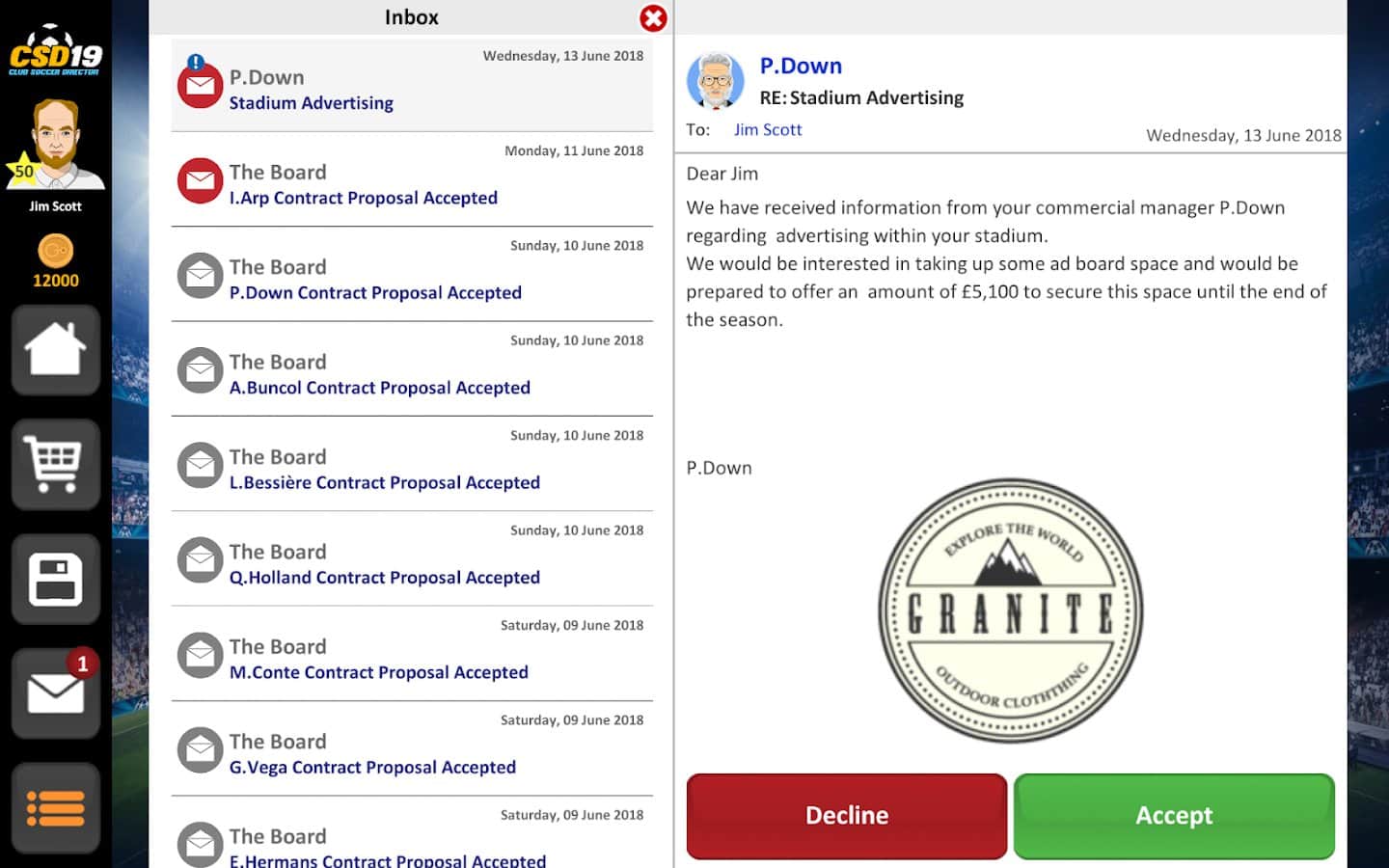 Soccer Club Director 2019 - Soccer Club Management – популярний футбольний менеджер на андроїд, з новими нововведеннями. У цій грі ви будете виступати в ролі спортивного директора, який повинен керувати існуючим футбольним клубом або створити свій. У цій грі були додані нові країни-такі, як Португалія, Нідерланди, Туреччина, Росія, Шотландія, Аргентина, США, Бразилія і Мексика. Вибирайте одну з представлених ліг і починайте сходження до вищої ліги. Наймайте і звільняйте персонал, покращуйте стадіони та інші будівлі, знаходите спонсорів і підвищуйте доходи, ніж обрадуете рада директорів.