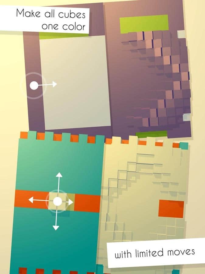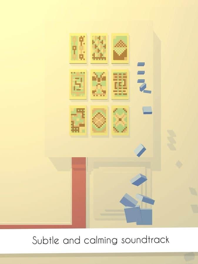 Cobe The Gallery - За словами розробника ця гра створена для того що б міркувати і заспокоювати нерви, однак далеко не у всіх буде порядок з нервами коли він дійде до найскладніших рівнів. Задумка в грі дуже проста, вам потрібно пофарбувати все поле в один колір, за певну кількість ходів. Однак є деякі правила, і в навчанні вам детальніше про них розкажуть. До того ж в грі дуже спокійна і приємна музика, що дійсно робить проходження гри трохи легше.