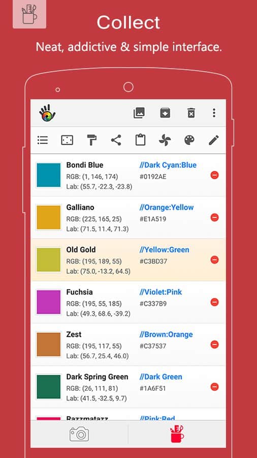 Color Grab (color detection) - Любите малювати? Або ж творити за допомогою фотшопа? Тепер ви зможете створювати більш реалістичні картинки, за допомогою цього додатка. Хоча його суть досить проста, справляється вона з головним завданням на відмінно. Працює воно разом з камерою в вашому смартфоні, і може визначити який колір ви зараз навели камеру. Потім воно визначить колір більш точно і видасть вам код цього кольору. Таким чином, вам більше не доведеться підбирати кольори, ви можете дізнатися точний колір чого-небудь.