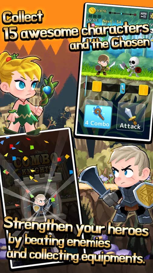 Combo Heroes: Blade Master Age – RPG на андроїд, де ви візьмете під свій контроль відважного героя і проведете його за численними рівнями гри. У цій грі ваш воїн набуде численні битви з жахливими монстрами і сильними босами. Результат всіх боїв буде залежати від швидкості вашої реакції і пальців, які будуть в потрібний момент торкатися екрану і змушувати персонажа наносити удари або захищатися. Застосовуйте в битві різноманітні здібності і руйнівні удари, якими володіє герой. Перемагайте в нелегкій сутичці своїх ворогів і отримуйте цінні трофеї і винагороди. Зберіть всі п'ять старовинних артефактів, які допоможуть вам битися з босами у фінальній битві. Відкривайте для себе нових героїв.