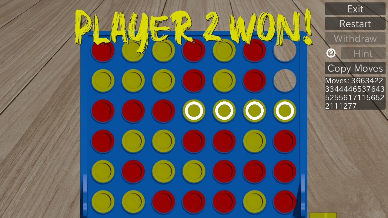 Connect Four перетворюється на стратегічне двобій, де кожне рішення впливає на результат гри. Грайте з друзями, зі здібним ШІ або спостерігайте за поєдинками комп'ютерів. Регулюйте складність, експериментуйте з тактиками, скасовуйте ходи та використовуйте підказки, щоб оцінити позицію. У режимі «неможливо» вас чекає професійний алгоритм, здатний розрахувати ідеальну стратегію. Вдосконалюйте логіку, перемагайте та доводьте свою майстерність.