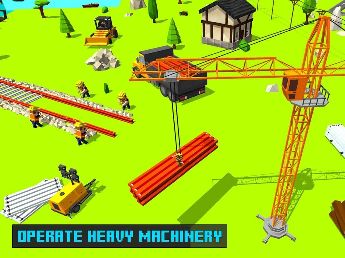 Construct Railroad Euro Train – симулятор на андроїд, де ви будете з нуля будувати залізницю. Вашим завданням буде очолити будівництво залізниці і виконувати поставлені різні місії. Для цього ви будете керувати різноманітної будівельної технікою і з допомогою бульдозера розчищати будівельний майданчик, перевозити матеріали в кузові самоскида. Рийте котловани екскаваторами, а також проведіть каток на місці укладання рейок. Використовуйте всі матеріали і техніку, щоб завершити будівництво вчасно і пустити по новій залізниці поїзд. Грайте в цю гру і насолоджуйтеся яскравою графікою, великим вибором будівельної техніки і простим управлінням.