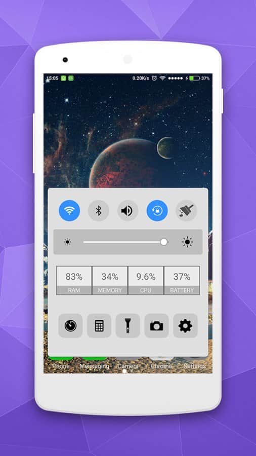 Control Panel - Control Center - Завжди мріяли про такий панелі управління як і на iOS 10? Тепер ваша мрія може стати реальною, за допомогою цієї програми ви зможете створити свою власну панель керування у стилі iOS 10, вам всього лише потрібно зайти в налаштування і змінити все на свій розсуд. У додатку ви знайдете безліч стандартних функцій а також панель з музикою. Керувати цією панеллю теж легко, вона буде розташована внизу екрану і розгорнути її можна одним свайпом вгору.