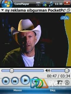 CorePlayer - мощный многофункциональный плеер, который по праву считается одним из лучших для Windows Mobile. Поддерживает практически все популярные форматы аудио: MP3, MP2, AAC, WMA, WAV, OGG, WAVPACK, TTA, FLAC, MPC, AMR, ADPCM и др.; видео: MKV, MPEG-1, MPEG-4 part 2 (ASP), DivX, XviD, WMV*, Dirac*, MJPEG, MSVIDEO1 и др. Позволяет прослушивать подкасты, просматривать видео на YouTube. Открывает изображения в форматах JPEG*, BMP, GIF, PNG.