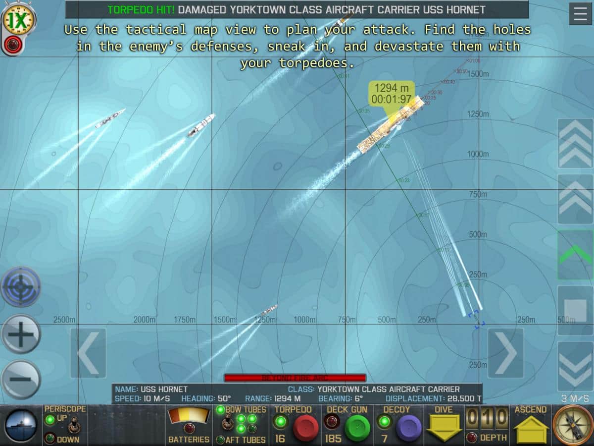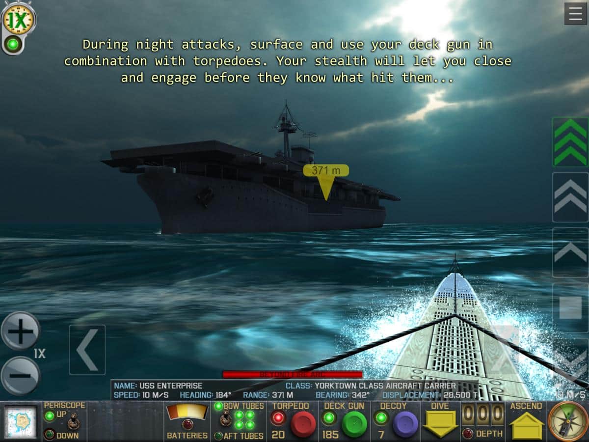 Crash Dive - в грі ви будете капітаном підводного військової човни і прийміть управління субмариною на себе. Вашої військової завданням є пошук ворожих конвоїв та їх знищення. Атлантичний океант великий, про приблизні маршрути ворожих кораблів нам відомі. Регулярно курсуючи у потрібному квадраті ви рано чи пізно знайдете свої цілі, а після цього точному наведенням і попаданням торпеди відправляєте кораблі на дно. Не забувайте що у кораблів є підводні міни і вони запросто зможуть ними вас накрити. Так що після того як вас виявили необхідно швидко сховатися в товщі океану і впасти максимально далеко від опускаються і вибухають морських, підводних хв.