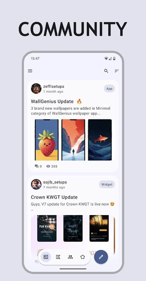 CreativeApp - створено спеціально для тих, хто прагне зробити свій пристрій унікальним і надає користувачам безліч інструментів та можливостей для персоналізації. Додаток не лише дозволяє редагувати елементи пристрою, але й створює зручну спільноту для обміну ідеями та рішеннями. У додатку також є кілька редакторів, які допоможуть редагувати зображення, обрізати пісні або підготувати ідеальні рамки для скріншотів.