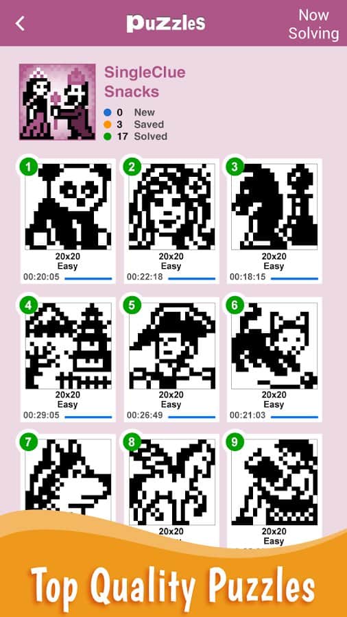 Cross-A-Pix: Nonogram Crosses - вам знову нічим зайнятися? Спробуйте цей додаток, і він затягне вас надовго! Обравши зображення, ми починаємо розфарбовувати його. Але не просто розфарбовувати, а за числами і точками, які видно на нашому (поки що) чистому полотні. Починаючи натискати куди треба, виришується певне зображення. А зображення тут можуть бути різними: від мініатюрної копії Моно Лізи до миленьких панд. Якщо ж ви щось зробили не так, не хвилюйтеся - до вас на допомогу прийде гумка, яка зотре непотрібні вам квадрати.