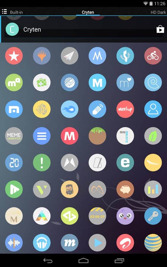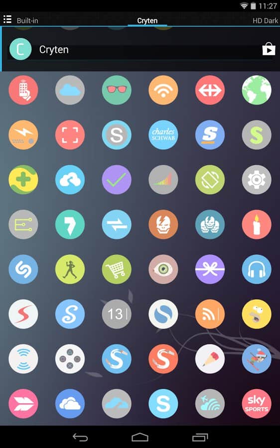 Cryten - Icon Pack - ще одна збірка іконок і шпалер від Vertumus, для вас. Тут іконки і шпалери абсолютно нові, не схожі та ті, які були в інших збірках. Новий дизайн і витончені лінії іконок просто зачаровують, вони виконані в прекрасному стилі і високій якості, так само як і шпалери в даному додатку, прекрасно доповнюючи один одного. Встановивши їх на свій девайс, ви не пошкодуєте, адже на даний момент, ця збірка, є однією з кращих.