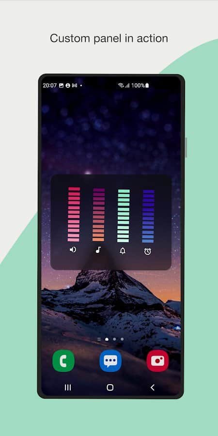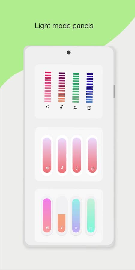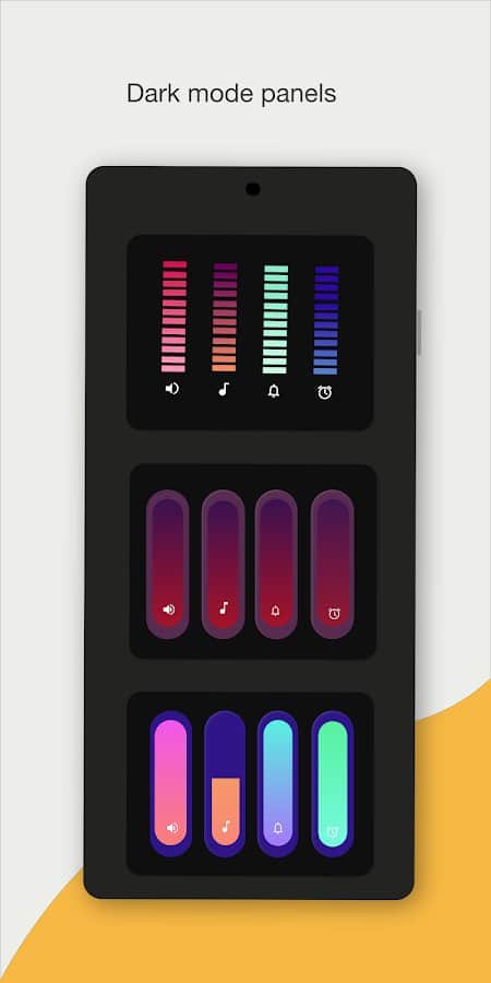 Користувацька панель гучності: Стилі - Персоналізуйте свій телефон, повністю змінивши вигляд панелі управління гучністю. Використовуйте готові шкіри або створюйте індивідуальні стилі під свої вимоги. У додатку доступні наступні стилі як шаблони: неоновий, веселковий, сонячний промінь, невідомий, вібруючий, простий об'ємний, спокійний, сабельний об'ємний. Ці ефекти можна застосувати як у світлому, так і темному режимах. Додайте прозорість та кольорові відтінки, налаштуйте час відображення панелі на екрані та спробуйте інші доступні функції.
