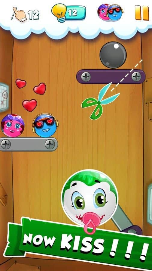 Cut the Loveballs – цікава головоломка на андроїд, де ви будете допомагати двох кульок зустрінеться. У цій грі ви зустрінете двох закоханих кульок, які повинні об'єднається, і ви повинні їм у цьому допомогти. Підключайте логіку та кмітливість і за допомогою численних об'єктів на рівні переміщайте кульки по полю. На своєму шляху ви зустрінете безліч перешкод і перешкод, розрізаючи блоки ви зможете рухати кульки в потрібному напрямку. Гра порадує гравців реалістичною фізикою, симпатичними персонажами і відмінною графікою.